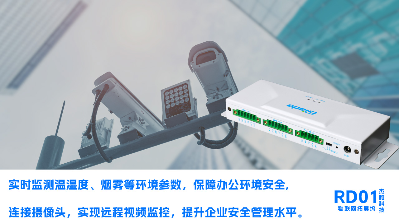 在企业中,RD01可以连接各种传感器,实时监测温湿度、烟雾等环境参数,保障办公环境的舒适与安全。同时,通过连接摄像头,实现远程视频监控,提升企业安全管理水平。