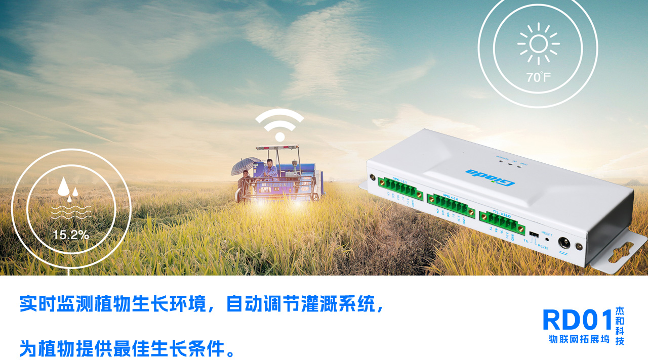 RD01搭配土壤湿度传感器、光照传感器等,可以实时监测植物生长环境,自动调节灌溉系统,为植物提供最佳生长条件。