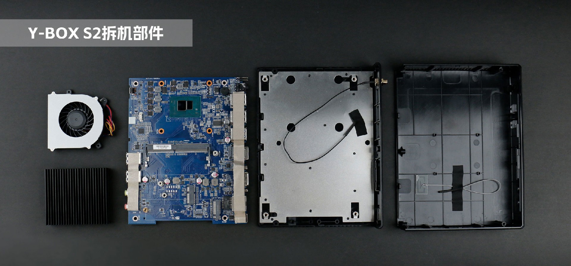 www.凯发桌面云终端Y-BOX S2机壳由两片式塑胶壳组合而成,整机由上至下主要分为三个部分:顶部外壳、内部主板、底部外壳。底部外壳内附一层铝板防静电,以防主板被静电损坏。主板处理器顶部安装一体式铝板鳍片,并涂抹一层散热膏用于导热,提高散热强度。同时,主板中部安装强劲的风扇用于散热,降低内存与硬盘读取时受温度的影响,提高运行稳定性。