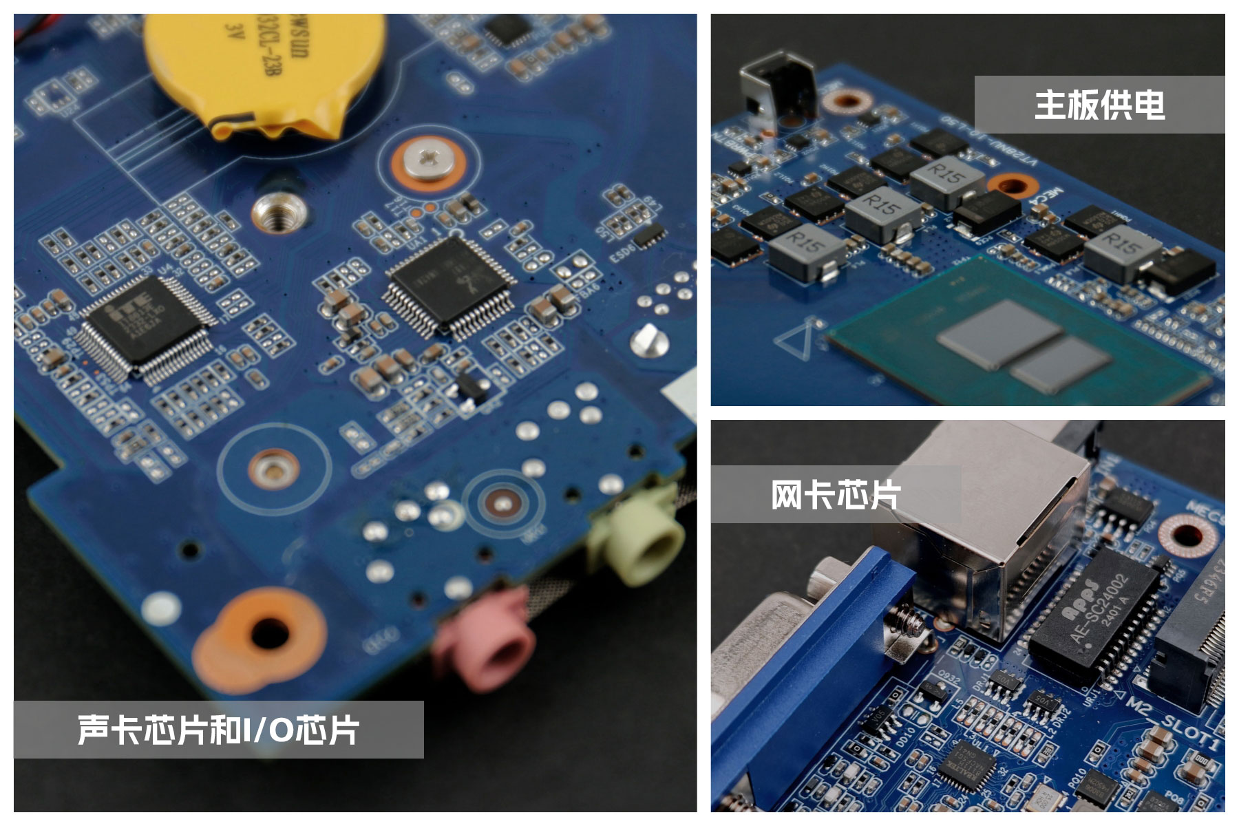 www.凯发桌面云终端Y-BOX S2主板采用的是3+1相供电,在主板两侧的接口附近,都分布了相关的芯片。在千兆网口附近有1个网卡芯片RTL 8111H,在主板背面的音频接口附近可以看到一个经典的“小螃蟹”ALC897 声卡芯片,声卡芯片附近有一个I/0 芯片HE8613E-LX。