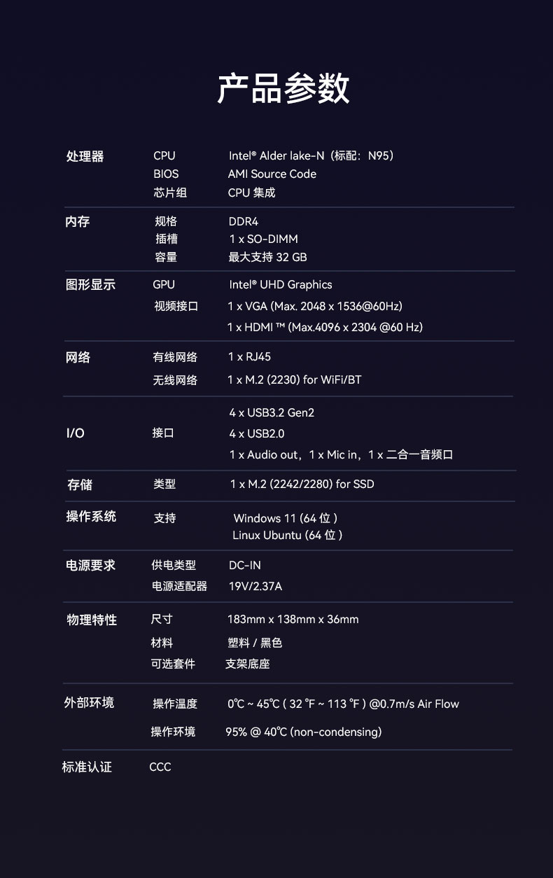 www.凯发桌面云终端Y-BOX S2作为全新一代的虚拟化主机产品,凭借其出色的便携性、优秀的办公娱乐体验和高效节能的环保设计,在学习、办公和娱乐等各个领域展现出卓越的适应性,可以广泛应用在教育、办公、金融、家用、医疗等领域,为用户带来丰富多彩的数字化体验,针对针对客户个性化需求,支持ODM/OEM/JDM定制化服务。Y-BOX S2详细的产品性能参数如下: