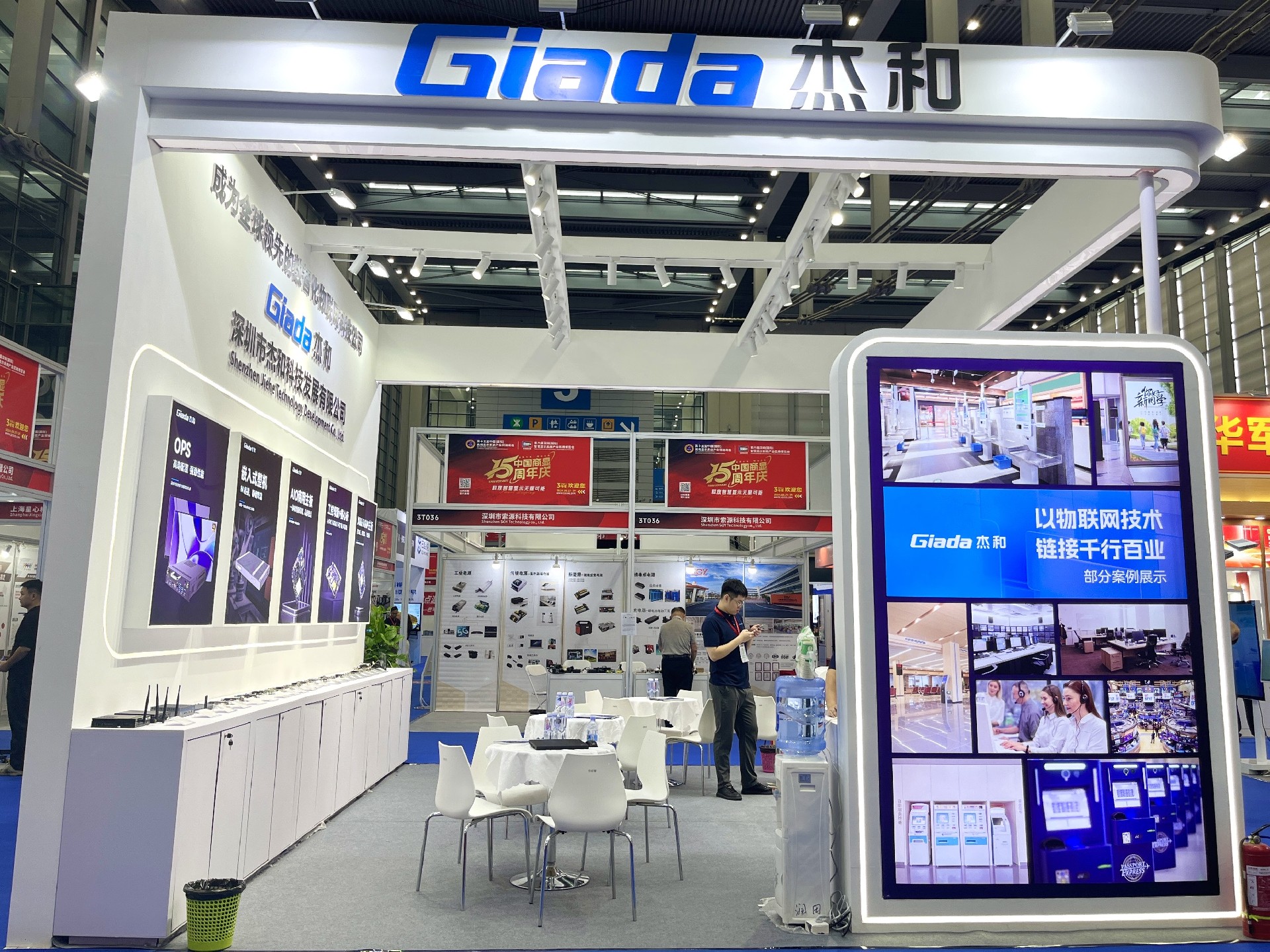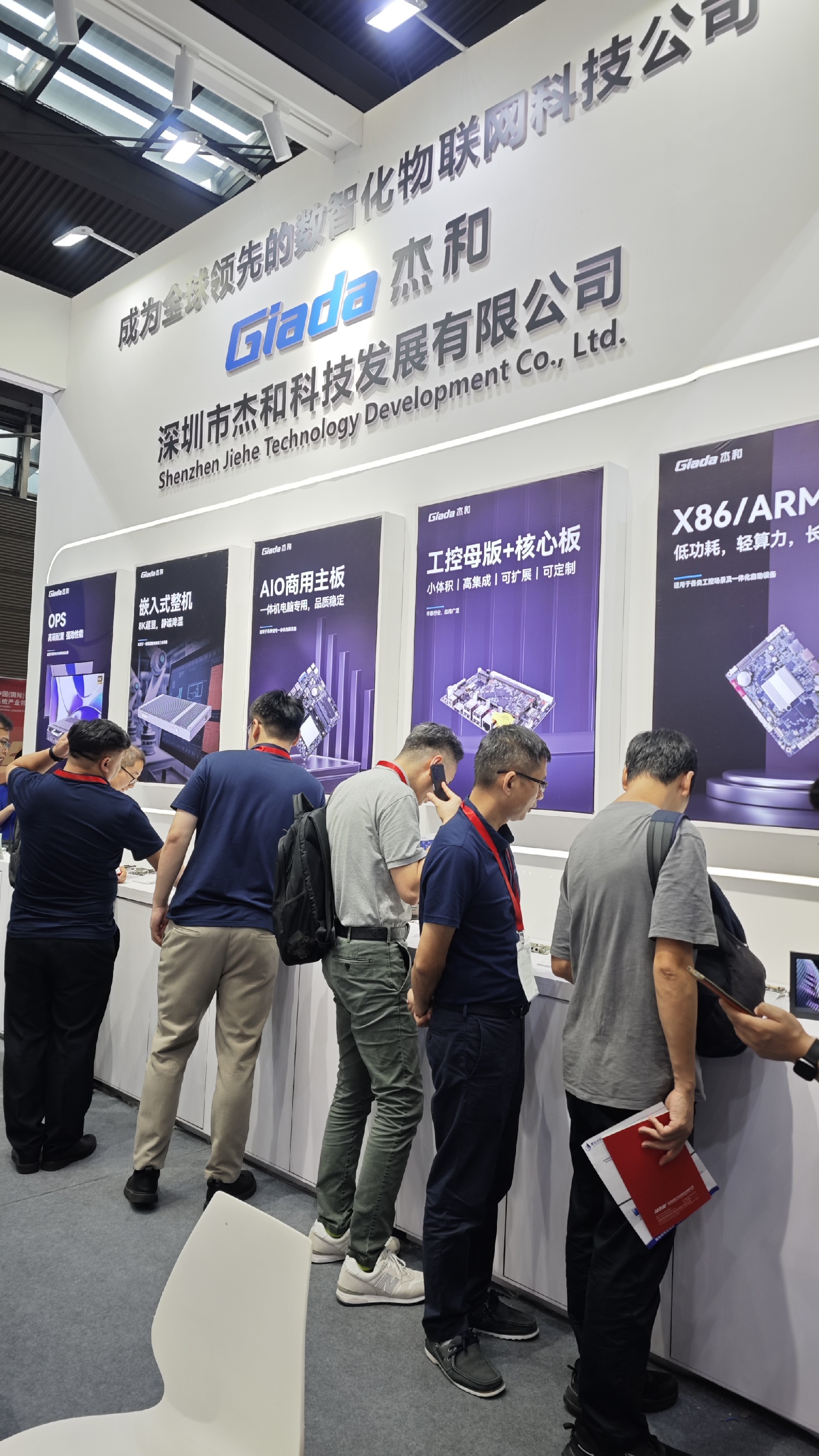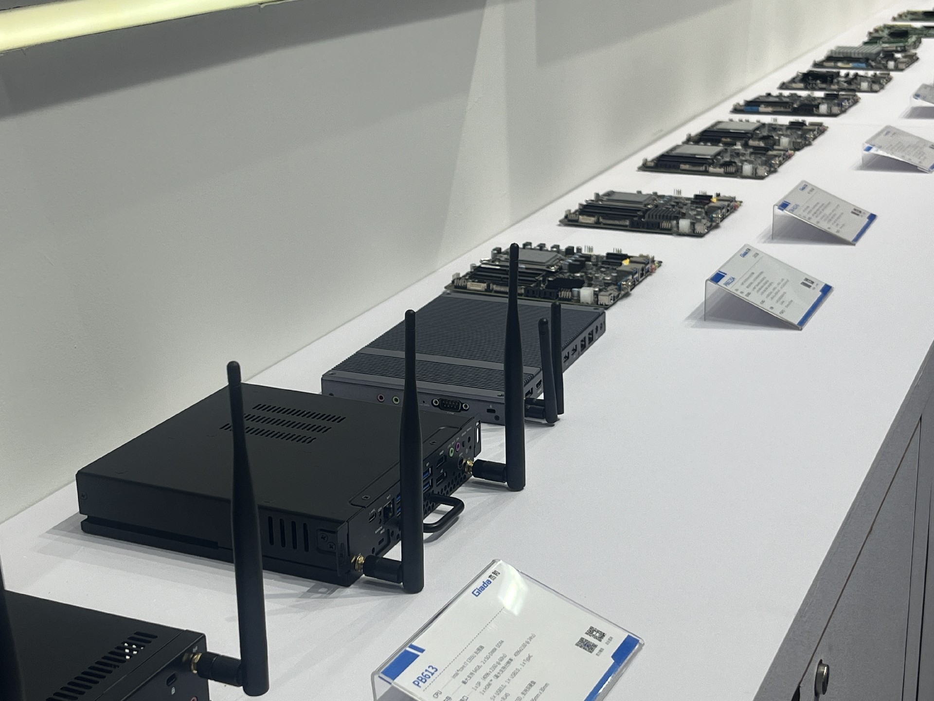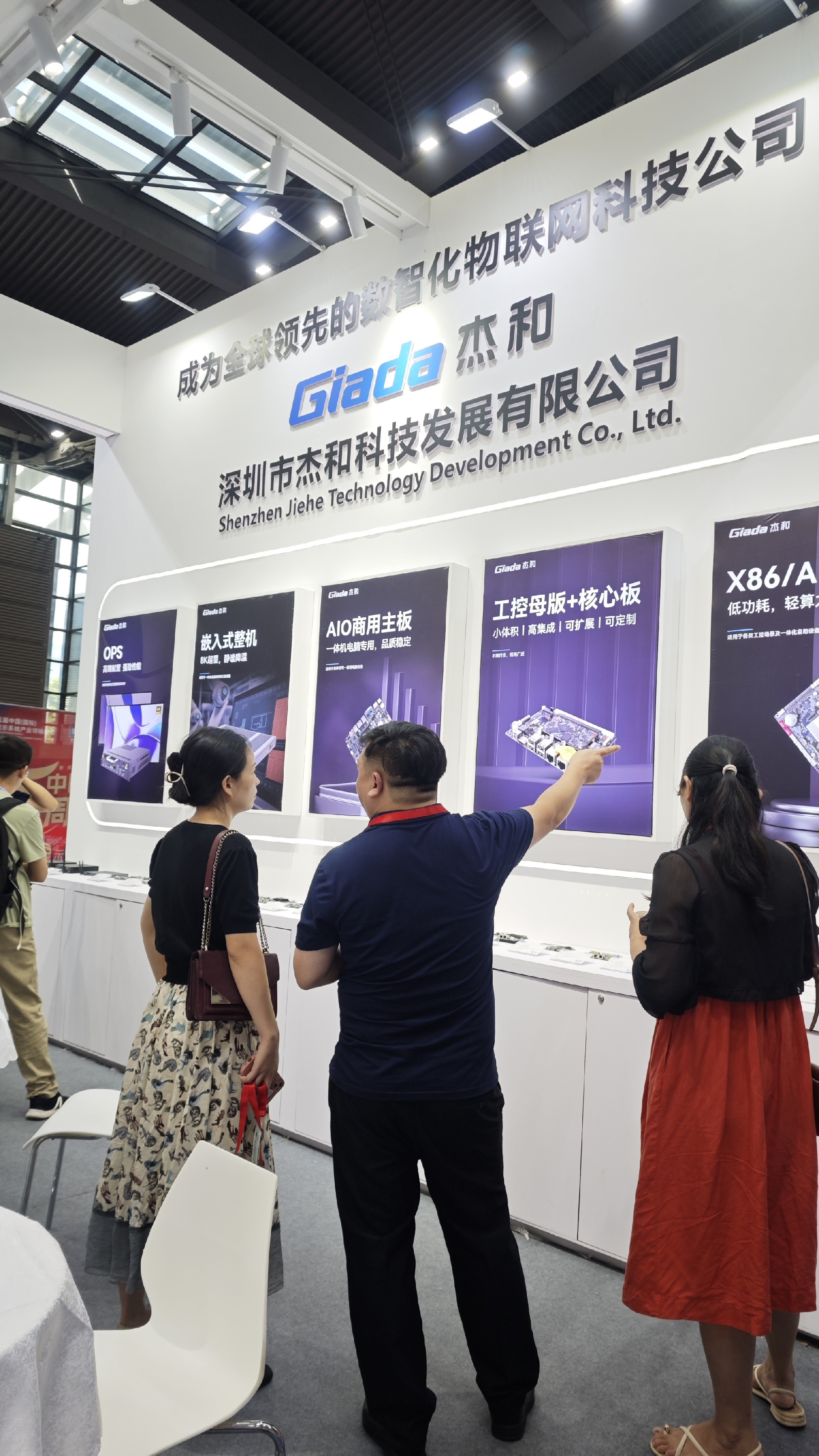 www.凯发科技展位放置在c位的明星产品和最新产品吸引了众多参观者的目光。展台下方整齐排列着公司的产品,包括主板、嵌入式整机、OPS等,这些产品不仅适用于商业展示领域,还广泛应用于工业、制造业和教育业等多个行业。