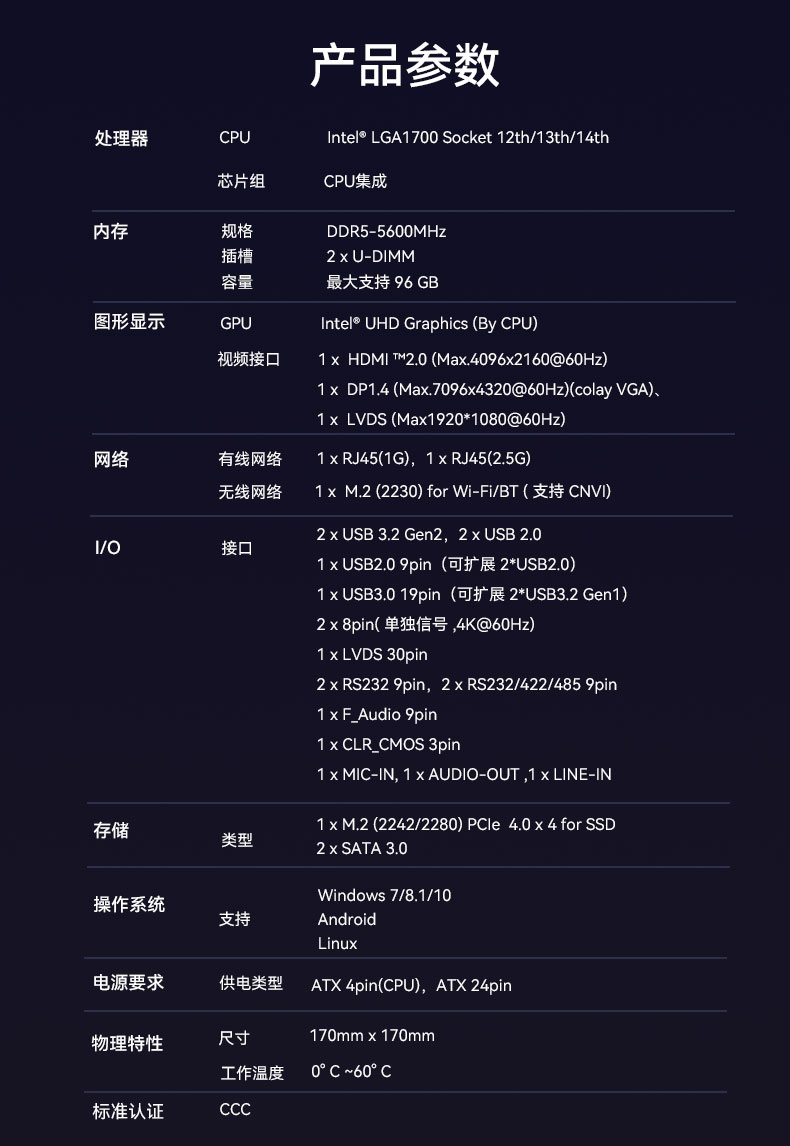www.凯发科技嵌入式主板IB5-8131采用Intel® B760 芯片组,支持Intel® 第12代至14代处理器。大容量内存支持,配备2个U-DIMM DDR5 内存,最大支持96GB,频率最高可达5600MHz,可灵活扩展NVMe SSD和2个SATA3.0存储。基于此特点,智能柜员机可满足设备流畅丝滑运行的功能。