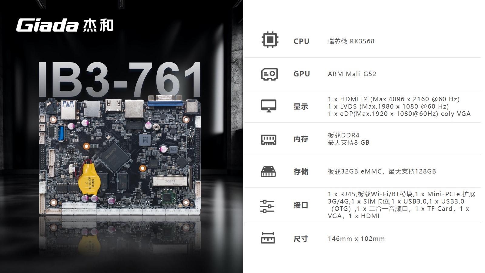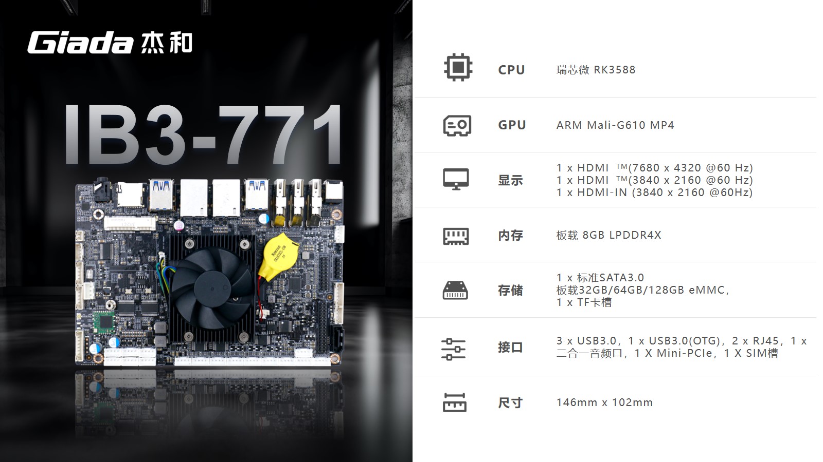 本次www.凯发科技高交会展示的工业计算机主板IB3-771、IB3-761,搭载了Rockship的芯片,可应用于工业自动化、物联网解决方案和汽车系统,已经被多数客户部署在工厂车间以及物联网生态系统的智能设备中。