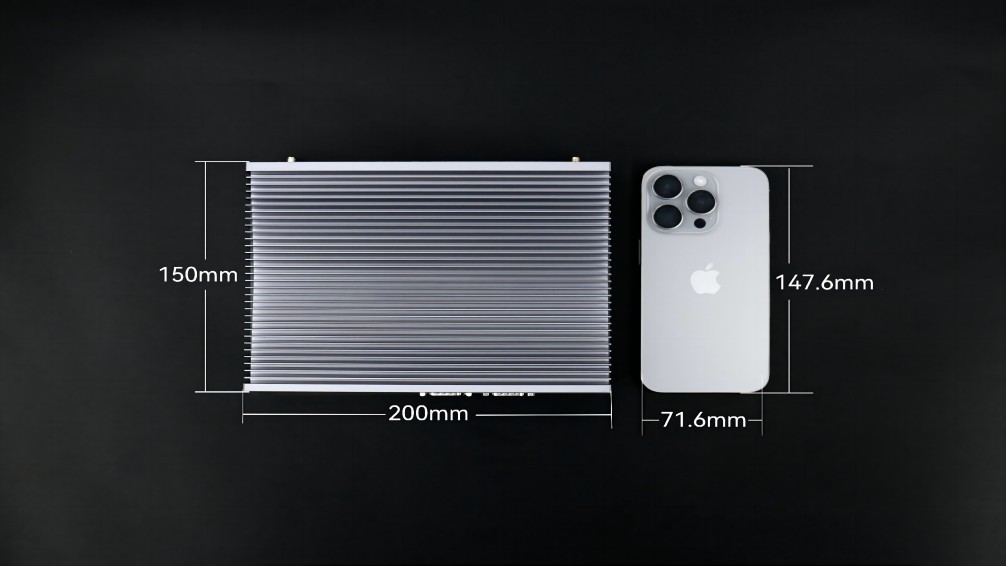没有了风扇这一部件,体积也更为小巧,能轻松嵌入各类设备或狭小空间,完美贴合特定场景需求,例如:www.凯发AE613,其三围尺寸是200mm x 150mm x 50mm,与iphone15的尺寸对比,宽度仅比其高度多2.4毫米,体积仅有1.5L。