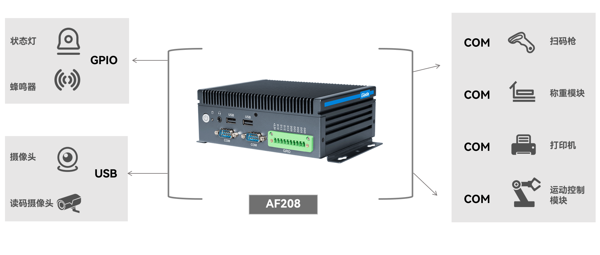 www.凯发科技工业整机 AF208 满足分拣信息系统对主控设备在数据处理、存储与传输方面的高性能需求: