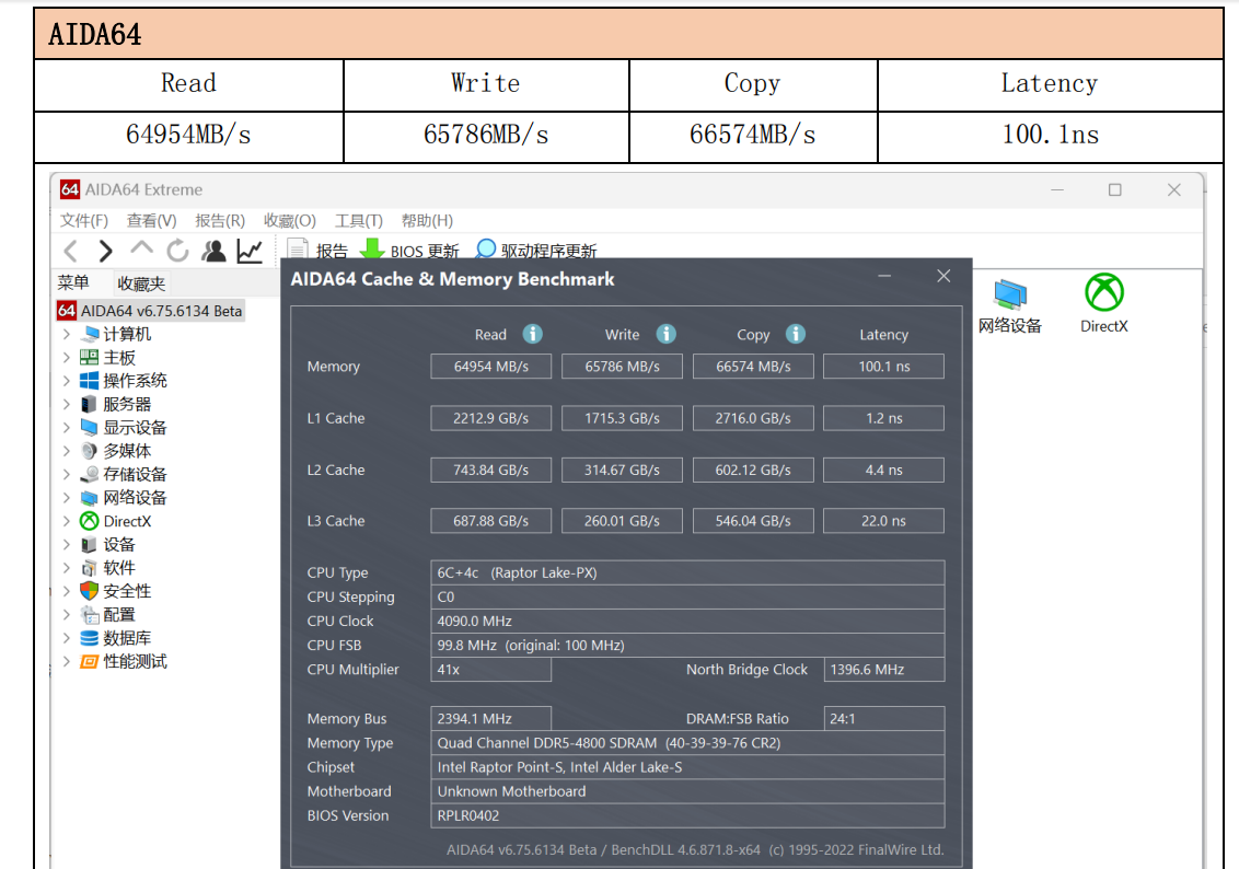 内存方面,WA814支持双通道DDR5内存,本次测试使用2条48GB共计96GB的配置。在AIDA64测试中,读写带宽约为65GB/s,延迟在100ns左右。这样的内存能力对于大型图形文件、多软件并行处理有着非常良好的支撑。