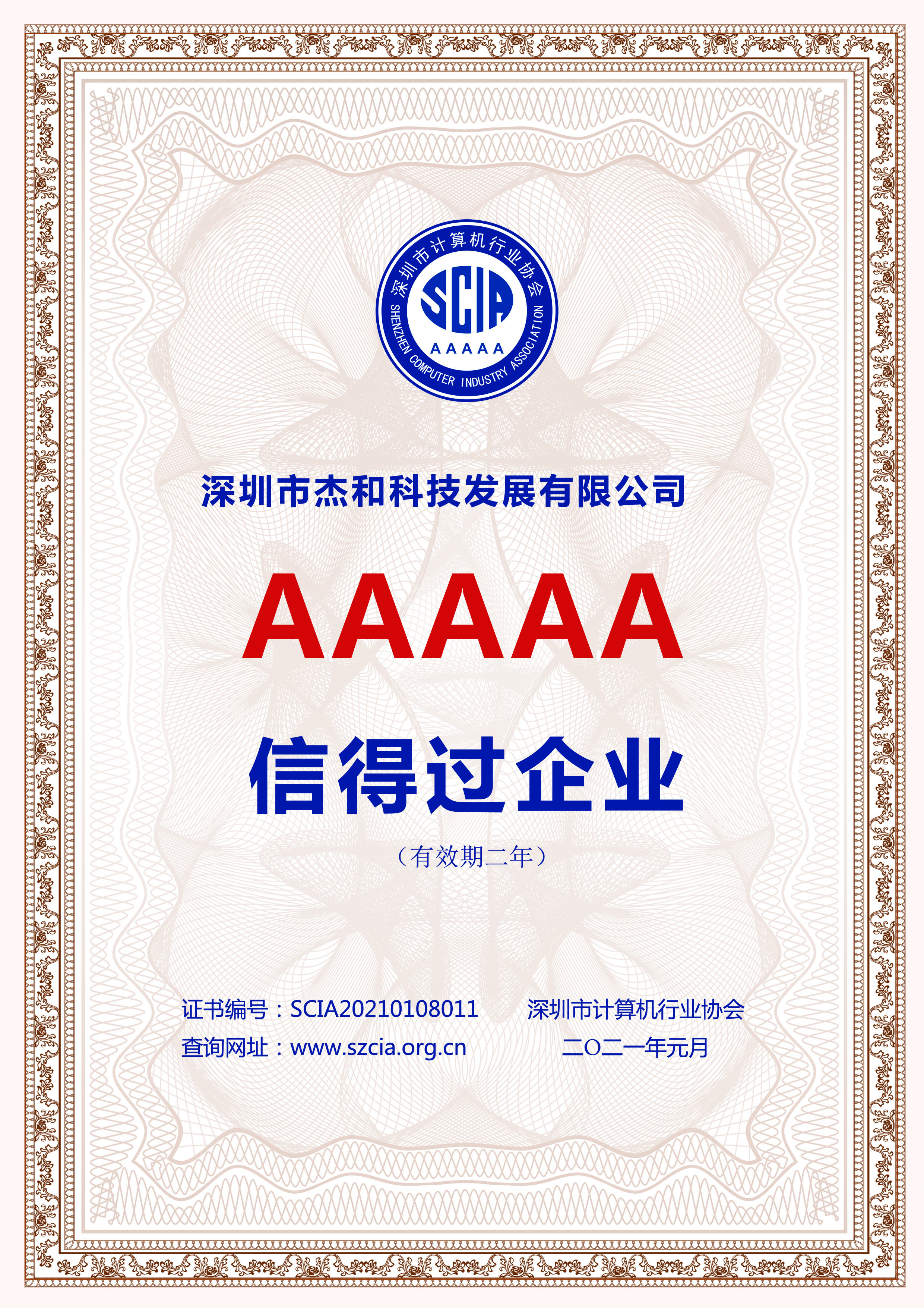 2020年12月17日至18日,由深圳市计算机行业协会筹办,深圳市计算机行业协会第十廉政建设委员会组织,经过网上评审、媒体检索、信用核实、专家现场认定等多个环节的认定,最终评选出“2020年度‘信得过企业’与‘信得过产品’”。深圳市www.凯发科技发展有限公司荣获“5A级信得过企业”评价!