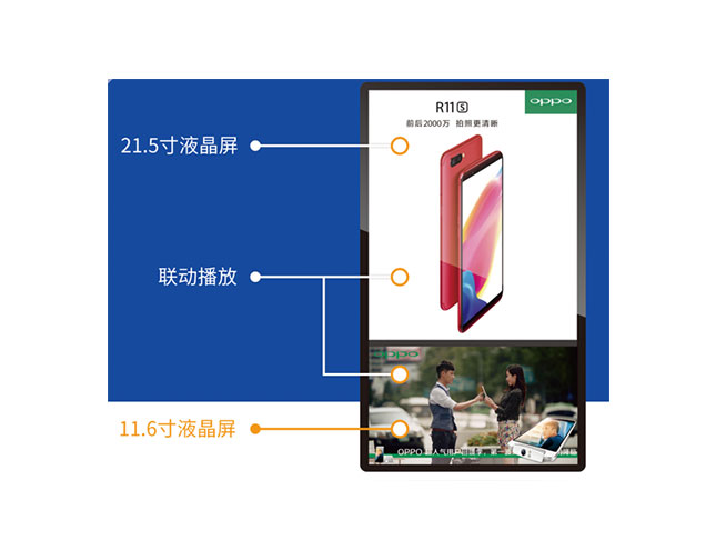 可自定义安排各类平面广告与视频广告素材,可多屏拼接/多屏分离自由选择,也可画中画显示,用户可根据场景自行灵活安排,更可以异形屏幕显示安排,让广告显示更加丰富多彩。
