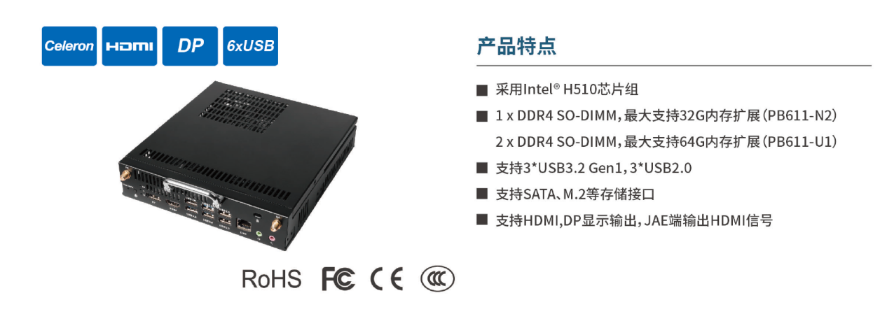 PB611是一种计算模块插件,可用于为平板显示器增加计算能力,主要应用领域在教育行业中的电子白板、教学交互智能平板、智慧电子黑板,商业办公中的会议平板/白板等,是智慧商业显示中不可缺少的一部分。