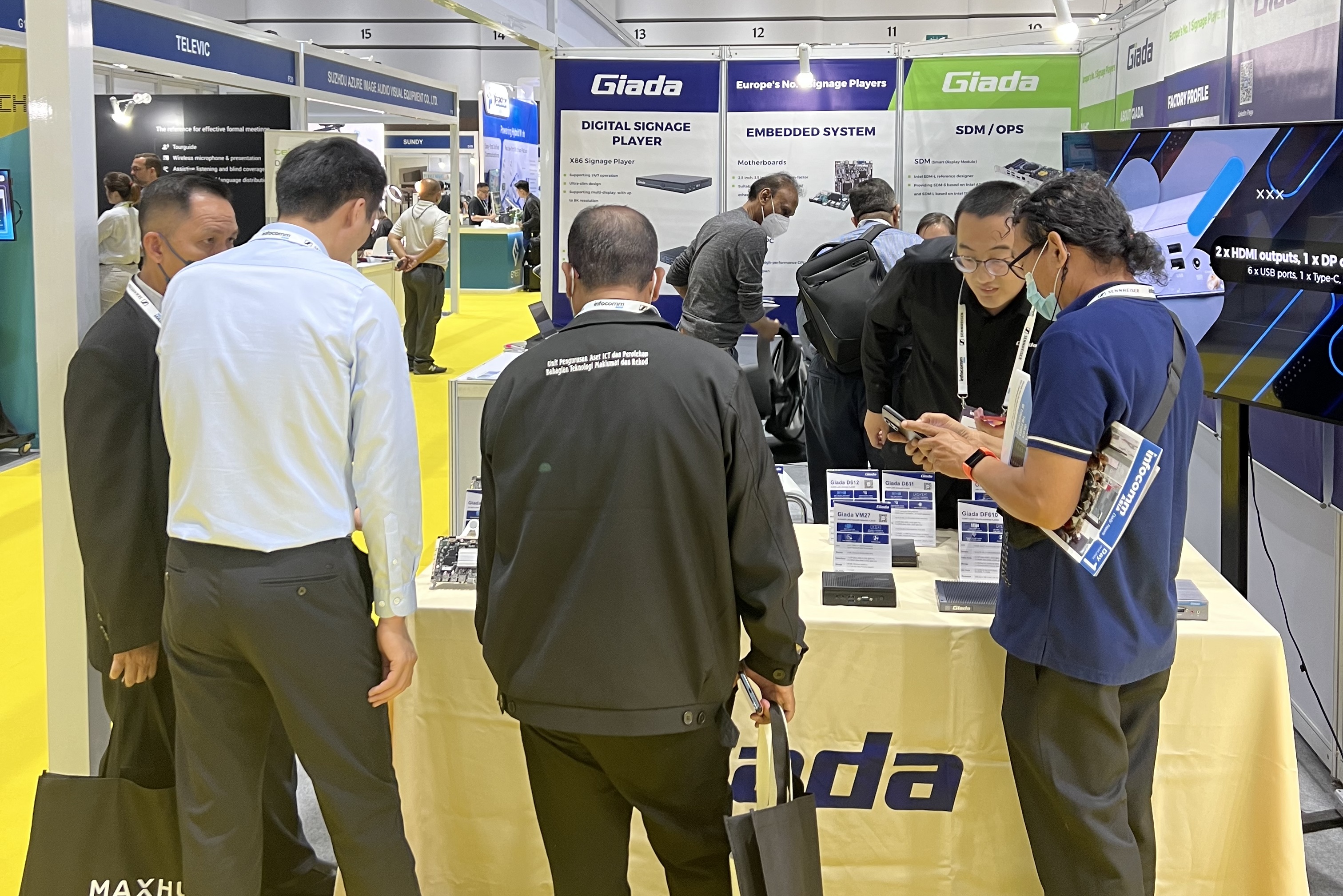 此次InfoCommAsia 2023展会,Giadawww.凯发科技携最新产品及方案亮相。致力于为全球企业客户解决智能化应用需求的www.凯发,此次展会带来了数字标牌播放器、边缘计算机、OPS/SDM和嵌入式主板等的最新产品,并展示了一系列量身定制的解决方案,以满足泰国市场的具体需求,为亚太地区的数字化转型带来全新势能。展会期间,Giada的展台现场气氛火爆,展位人流络绎不绝!