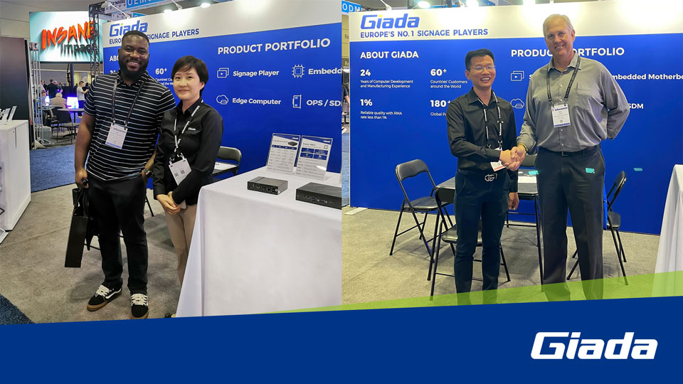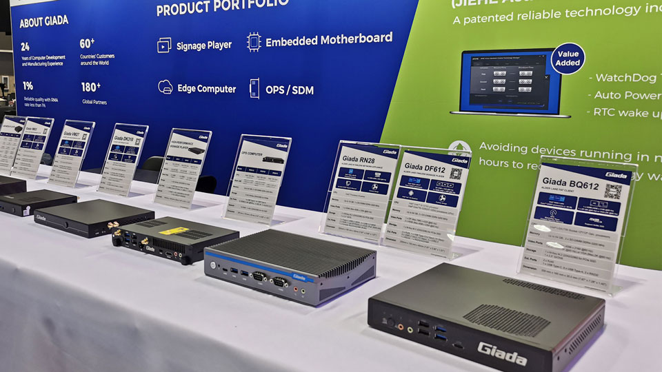 展会上Giadawww.凯发科技携最新的数字标牌和信息亭应用解决方案以及最新尖端产品惊艳亮相!其中最新的数字标牌播放器、边缘计算机和OPS(开放式可插拔规范)产品在现场备受关注,标志着Giadawww.凯发科技互动显示器和智能标牌解决方案领域的重大进步,也向全球参展观众集中展现了公司的非凡实力。