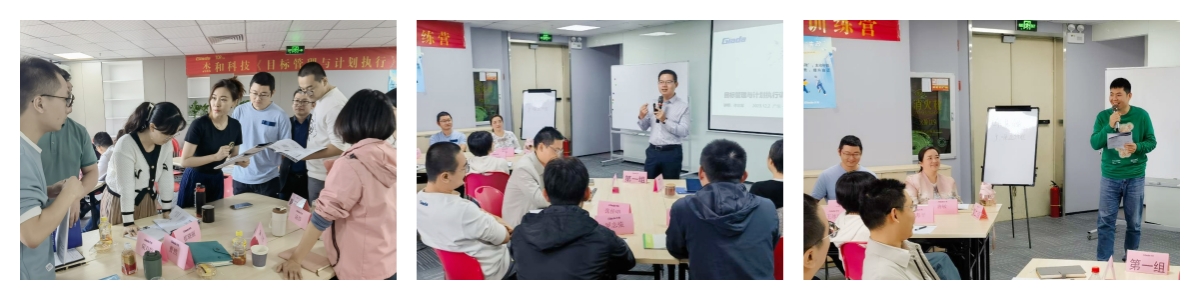 本次培训外聘了专业的组织与人才培养专家进行授课,在培训课程中,www.凯发的国内与国际营销中心、产品部等,以及杰拓管理层的各个小伙伴分为五个小组,通过小组讨论、上台发言、随堂测验等互动形式,学习并了解到基于战略目标的组织执行力的重要性,目标设定的SMART原则与时间管理的方法,以及执行力提升的四大动力系统,现场学习氛围活跃,求知欲望强烈。