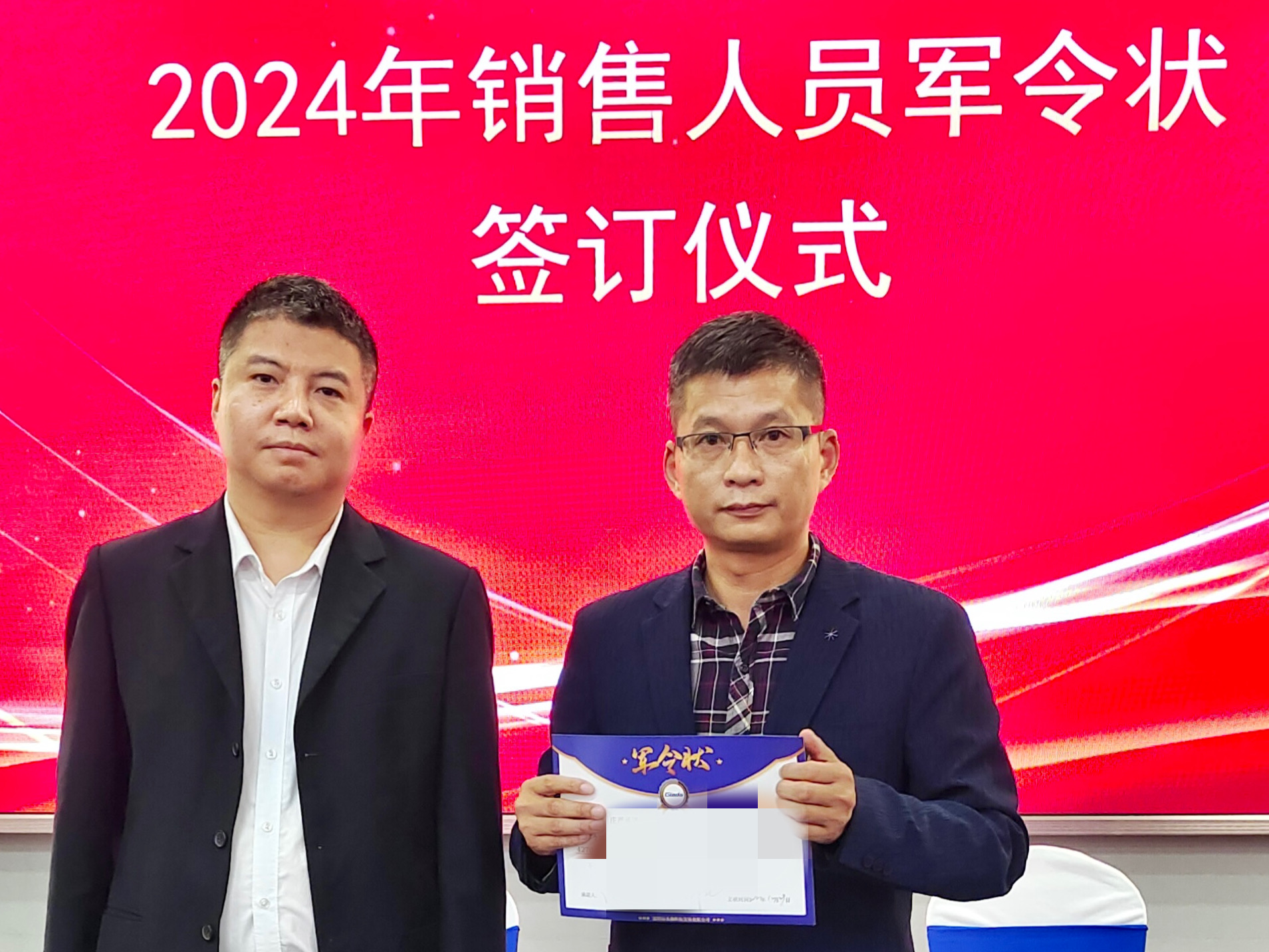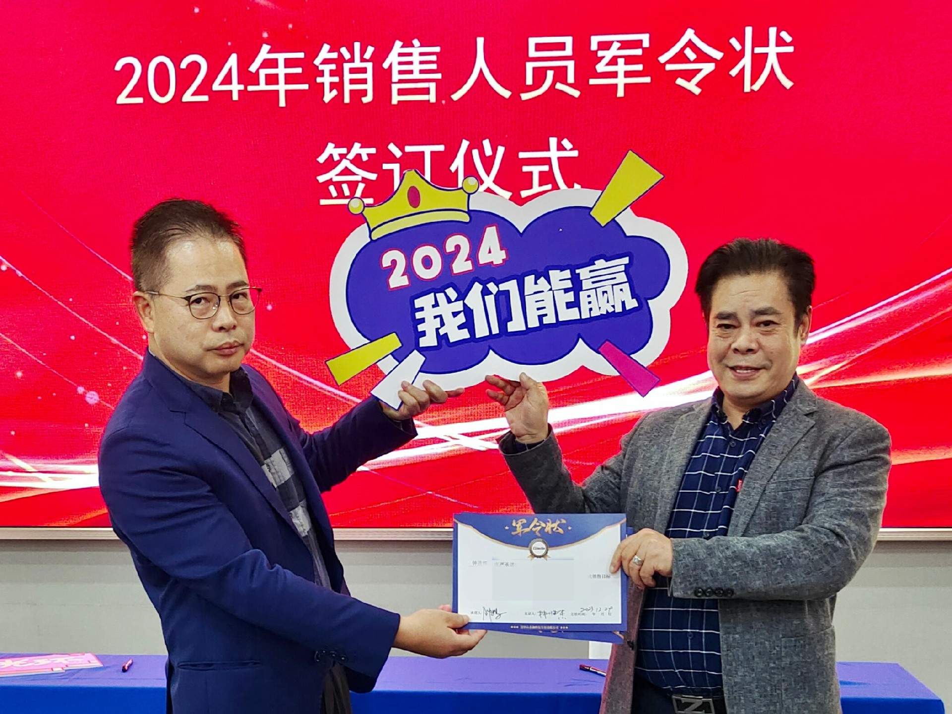 2024公司年度战略目标确立,言出必行,使命必达,国际/国内销售团队为了共同的目标开始军令状签约仪式。一纸军令状,是www.凯发科技与销售人员的双向承诺,是压力,更是动力。是不破楼兰终不还的决心,更是春风得意马蹄疾,一日看尽长安花的期待。